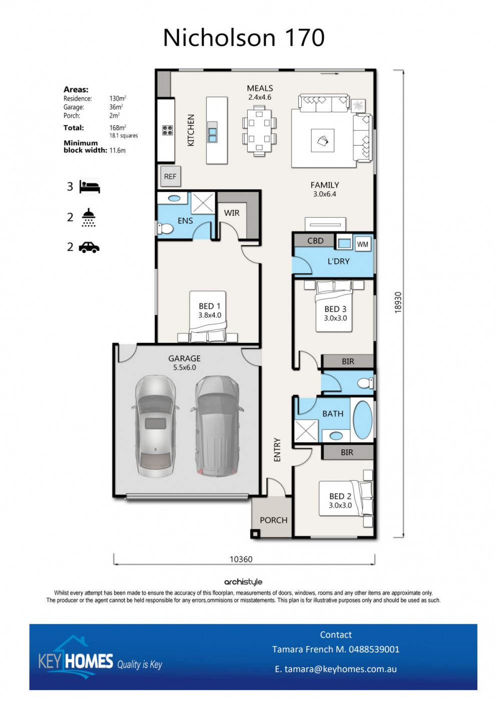 The Nicholson 170 THE GIPSY POINT (All Facades are for display purposes only) 168 Sq/m total 3 2 2 View Plan